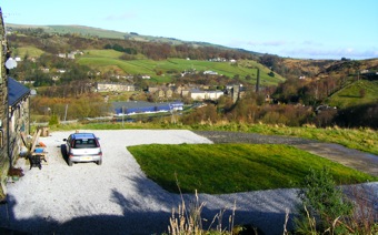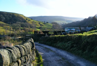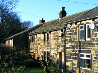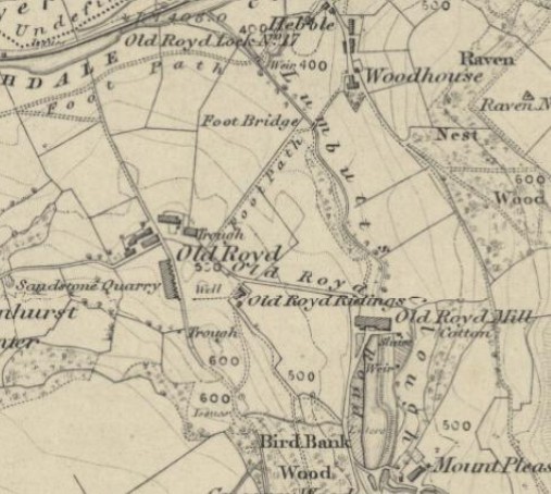Oldroyd comprises a farm, converted barn, two rows of cottages and for a time, a Methodist Chapel. The farm is a Grade 2 listed building, parts dating from the early 18th century. At this time settlements were located on the "shoulder" of the valley and probably replaced wooden buildings on the same site. The first cottages at Oldroyd were probably built at around the same time. Some of these cottages, along with the farm, show evidence of hand-weavering: the evidence being the characteristic first floor windows. The row of Oldroyd Cottages was probably built in the late 18th or early 19th century in association with the construction of the nearby Oldroyd Mill, which was first recorded in 1794. Looking at old maps, this row of cottages appears to have been extended in the 19th Century. Oldroyd Mill would originally have been water powered: the smaller building on the right. At some time the mill was extended and later two floors added, probably when steam power was introduced associated with powered looms for weaving. The mill lay in Lumbutts Clough. Clough is a word used particularly in this part of the Lancashire/ Yorkshire Pennines to describe a narrow valley or ravine running down from the moors.