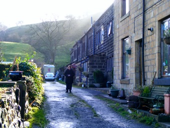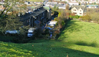 All has now vanished, as Oldroyd Mill was disused by the 1st World War and demolished in the 1920's. However, moving back in time, the area around Oldroyd also contains the marks of an earlier transport, the pack-horse. The hamlet is on the route of pack-horse trains passing over the Pennines between Lancashire and Yorkshire. Within the village itself, there remain the horse troughs used by the ponies on their journey up the clough. Higher up the valley a flagged path, the Long Causeway, marks the route over the moors. Whilst these paved ways may have helped the pack-horse, they also provided a guide for workers travelling across the moor at night, feeling their way through the marshy ground by keeping their unshod feet on the flags. Reading the local history of the region one cannot but be impressed by the Quaker, non-conformist and liberal independence of the local inhabitants. Oldroyd Independent Methodist Chapel is a typical example of a breakaway group of Christians common in the area. Unlike many prominent landmarks, the tower on nearby Stoodley Pike was built to mark the outbreak of peace in Europe, not to celebrate ventures within war. ![]() |